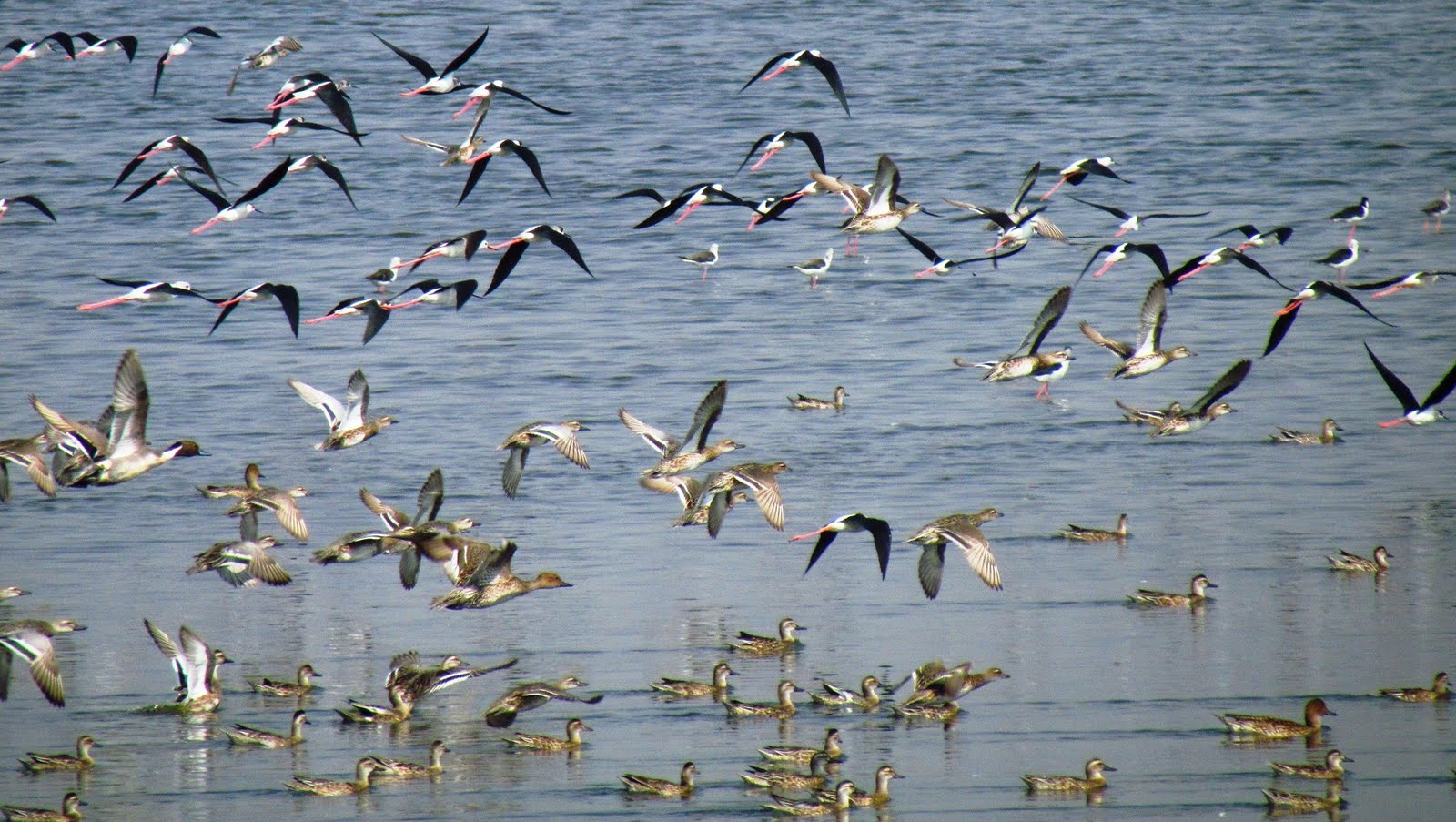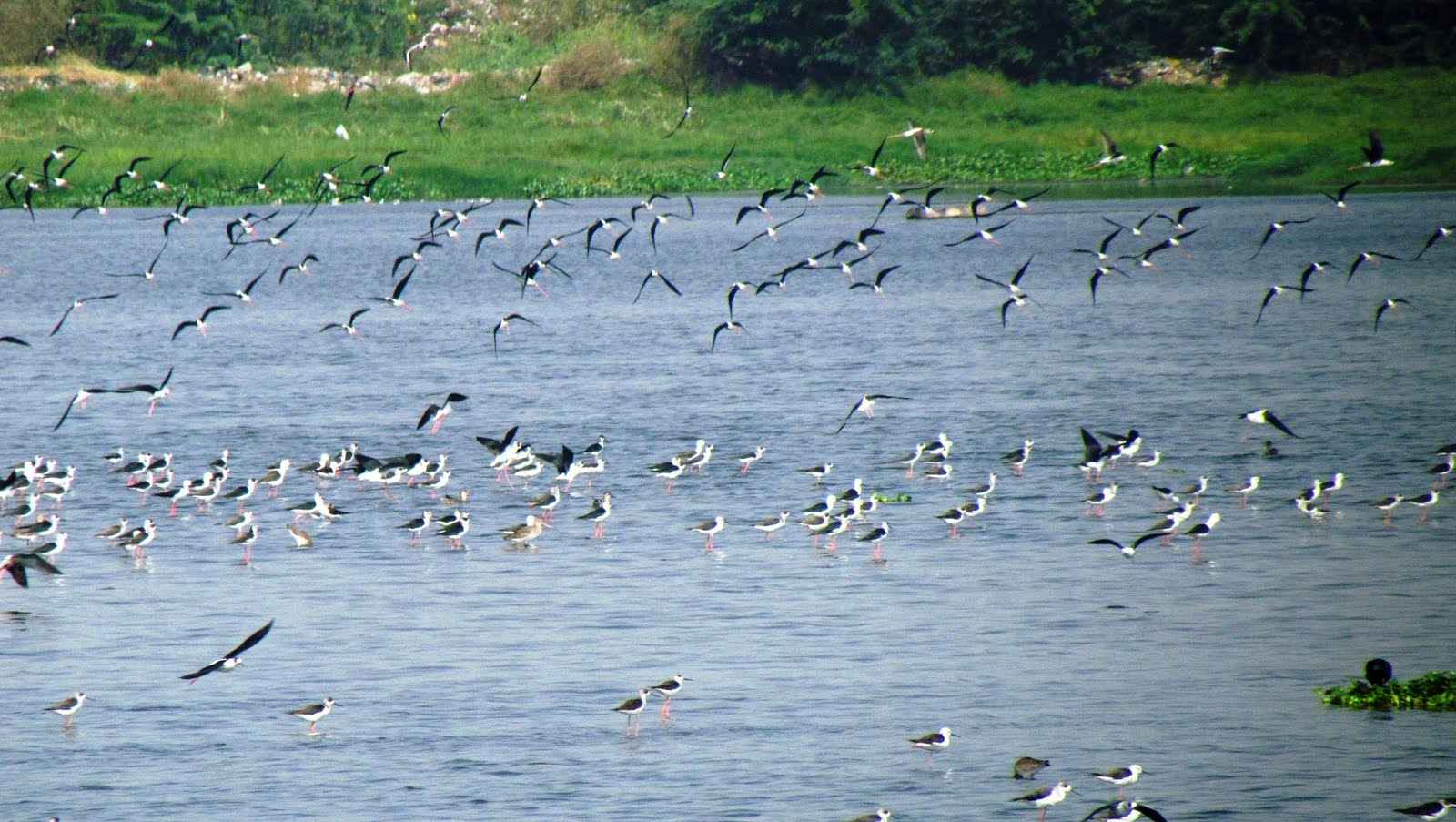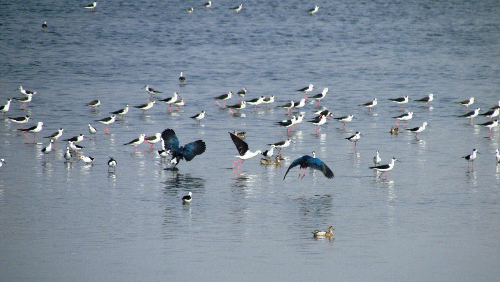 Black winged stilts are small birds seen in thousands count. They fly in a huge group and the sight was so beautiful. The beaks and wings were black with white feathered body.