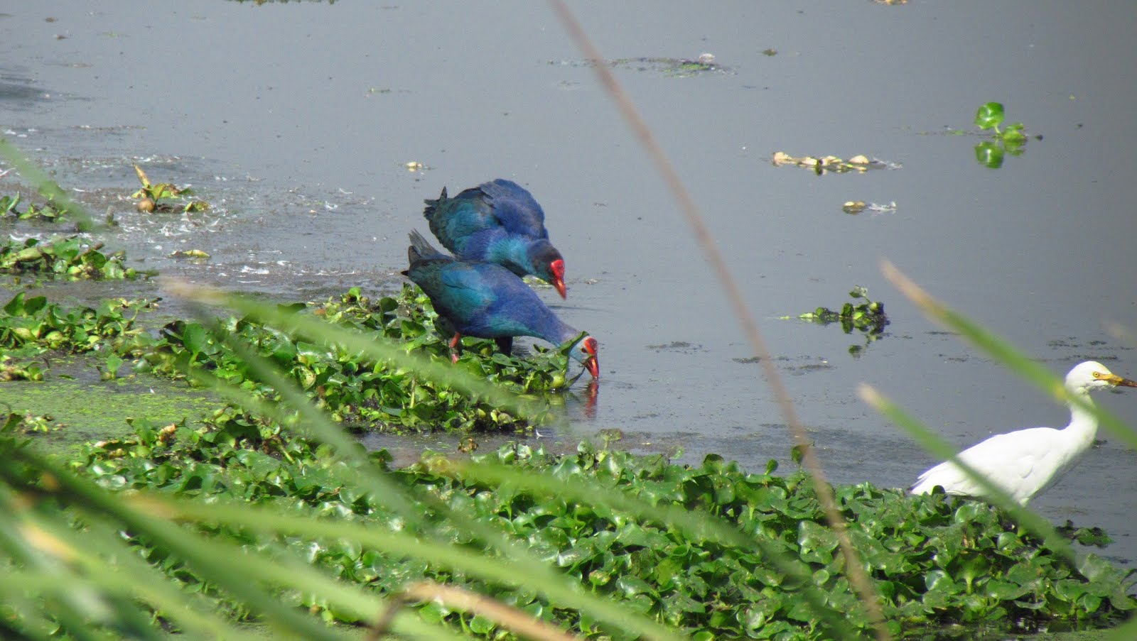 Now we crossed to the other side of the road and slowly walked back seeing the birds and other residents there. Dr.Daniels explained us the bad effects of dumping garbage and shrinking of the marsh by constructions around it.Dr.Daniels showed us one of the very rare species of hen seen here. It is called Purple moorhen or purple swamp hen. The color of this hen is eye-catching. They fly like other birds.