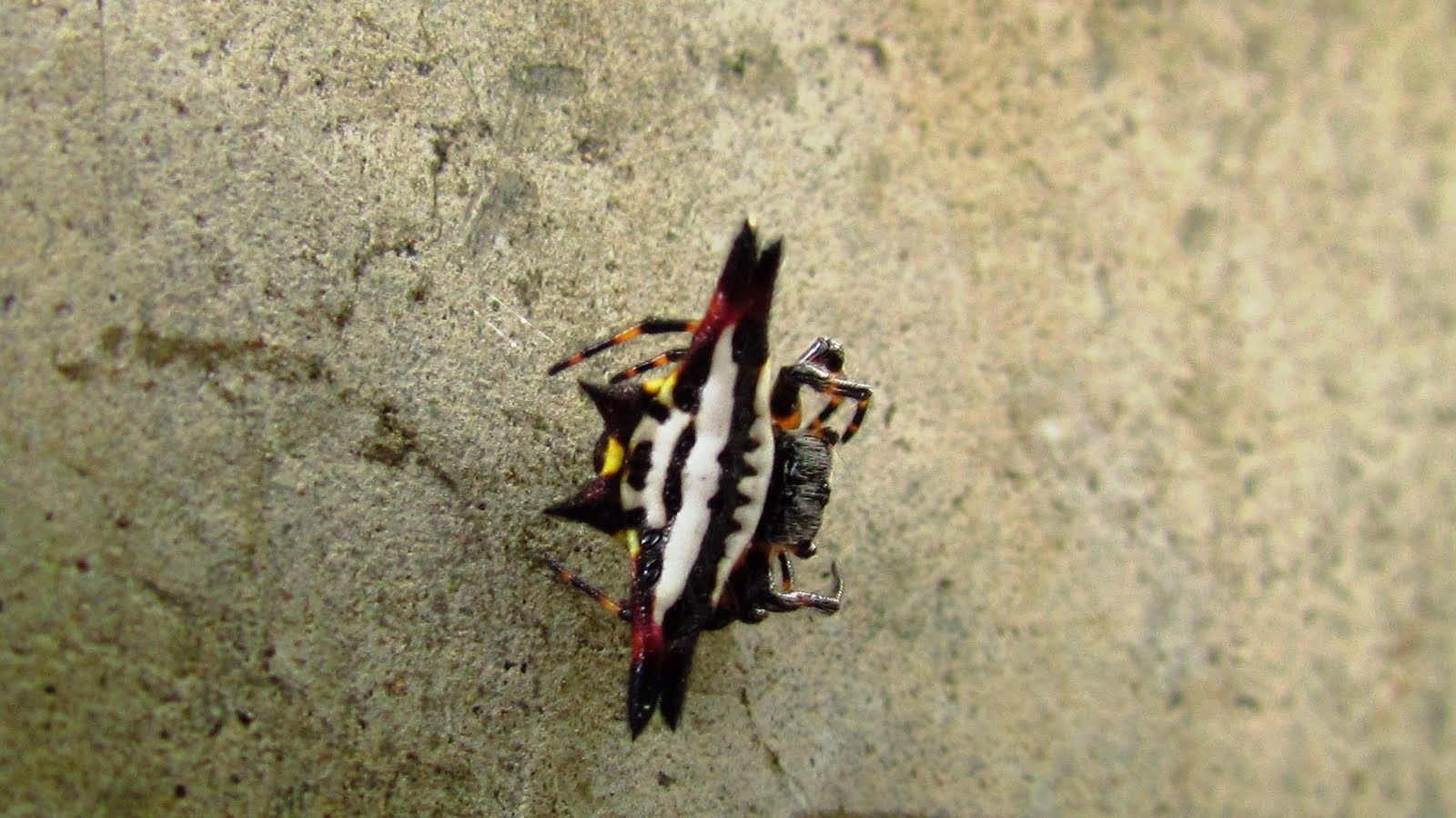 Spiny orb-weavers is a common name for Gasteracantha, a genus of spiders. They are also commonly called Spiny-backed orb-weavers, due to the prominent spines on their abdomen. These spiders can reach sizes of up to 30mm in diameter (measured from spike to spike). Although their shell is shaped like a crab shell with spikes, it is not to be confused with a crab spider. They have 6 spines.