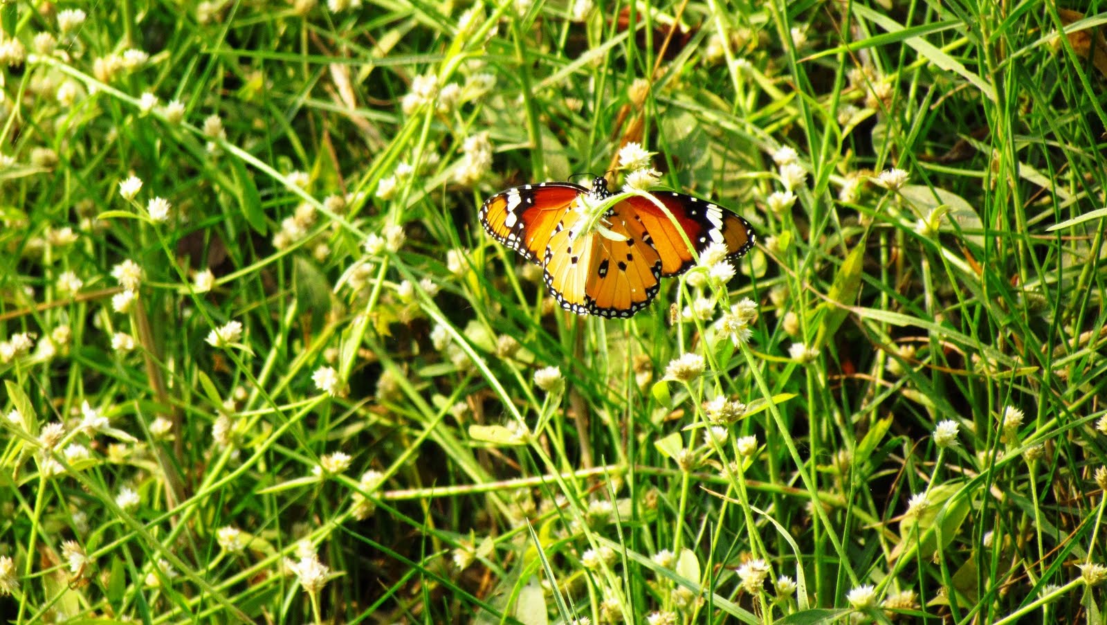 I was able to capture a beautiful moment on which a butterfly was trying to fill her stomach with nectar from nature